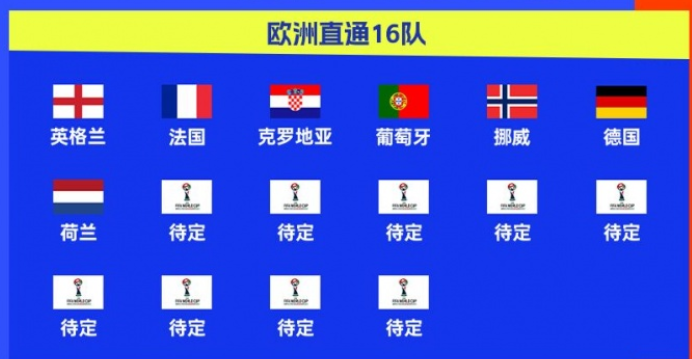 11月18日讯 世欧预小组赛结束多场对阵,德国、荷兰均取得大胜,两队成功晋级美加墨世界杯正赛。至此,2026世界杯直通名额已经确定34席,还剩14席。
