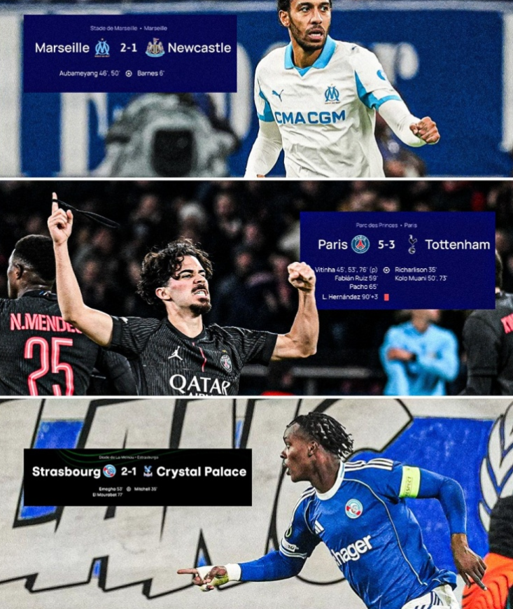 至此,本轮欧战上演的“英法对决”全部落幕,结果呈一边倒态势:纽卡负于马赛、热刺输给巴黎、水晶宫不敌斯特拉斯堡。三支英超球队在面对法甲对手时无一例外全部败北,斯特拉斯堡的胜利为法甲球队对本轮英超的“通杀”画上了句号。